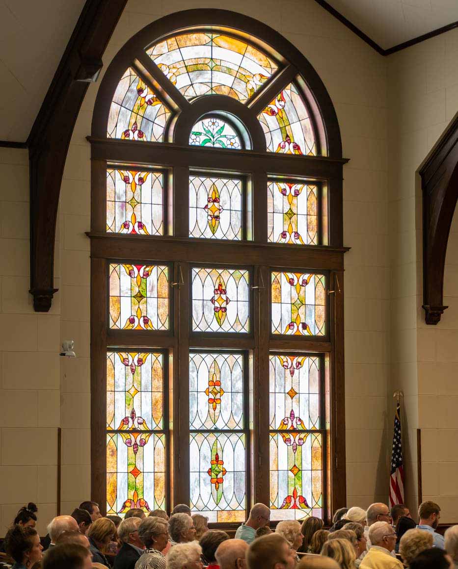 North Street’s current building has its foundation deep in the landscape of the city of Zeeland at 20 E. Main. The red brick church, built in 1909, is the second oldest building in Zeeland. It holds the church’s original steeple bell, cast in 1885. In addition, North Street’s colorful glass windows hold a special history and symbolism for the church. The windows are registered with the State of Michigan Stained Glass Census.